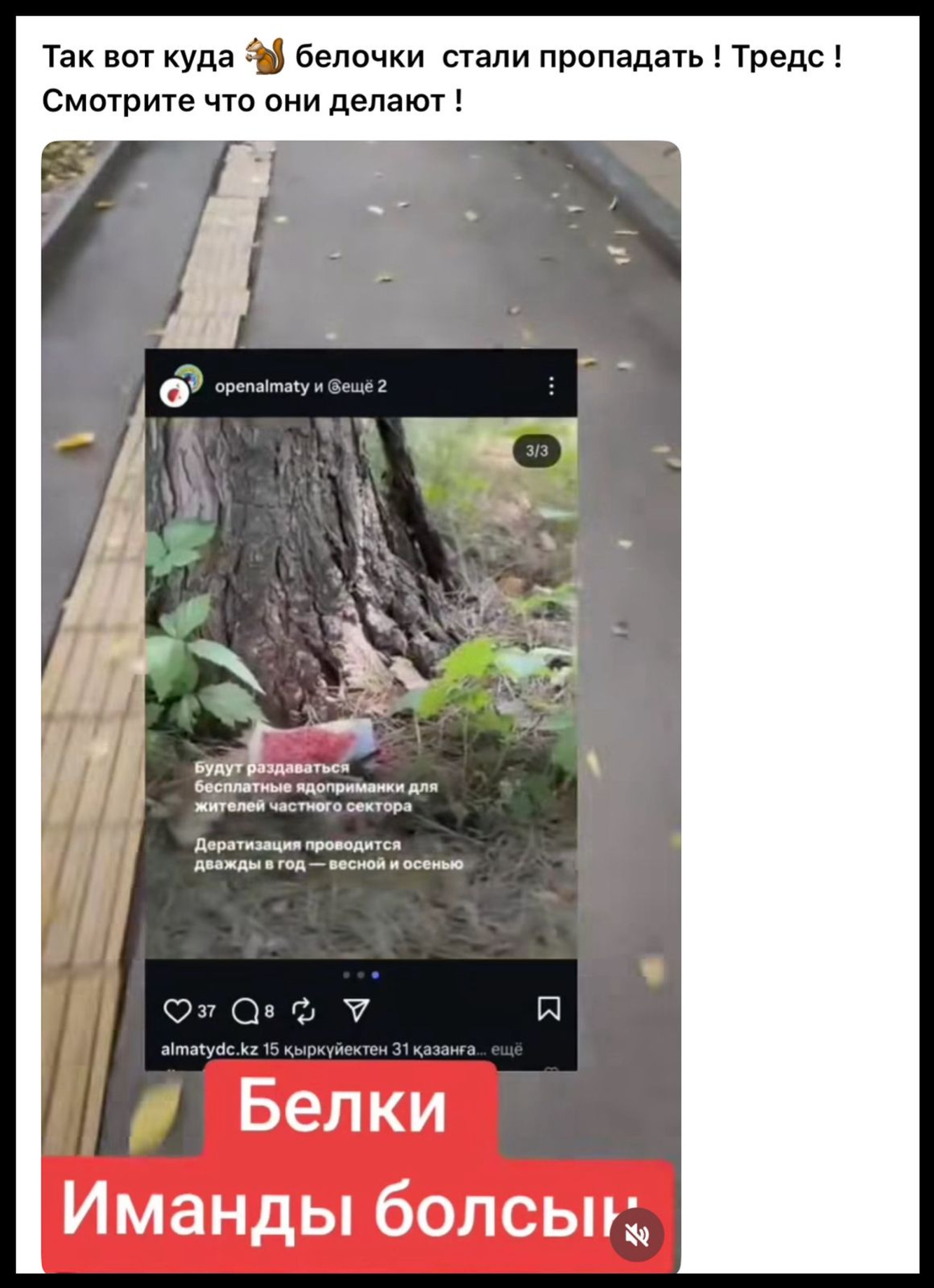 - «Действительно, кому они помешали? Тут в комментариях уже несколько человек написало, что недавно видели трупы белочек»